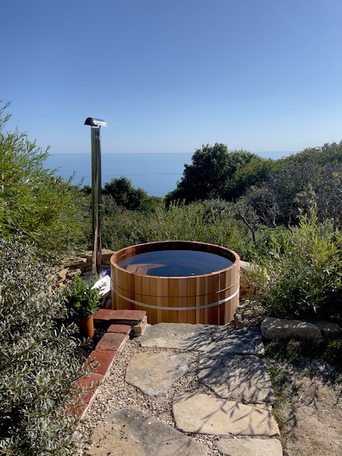 Luxury,self-catering accommodation is available in a substantial wing of the house for up to six people in three stunning bedrooms with a beautiful living room, bespoke marble kitchen with AGA, utility room, entrance hall, two bathrooms and large secluded garden. The house has magnificent views from the garden over Weymouth Bay and Durdle Door. Throughout the year, guests can enjoy our wood-fired hot tub overlooking the sea.
